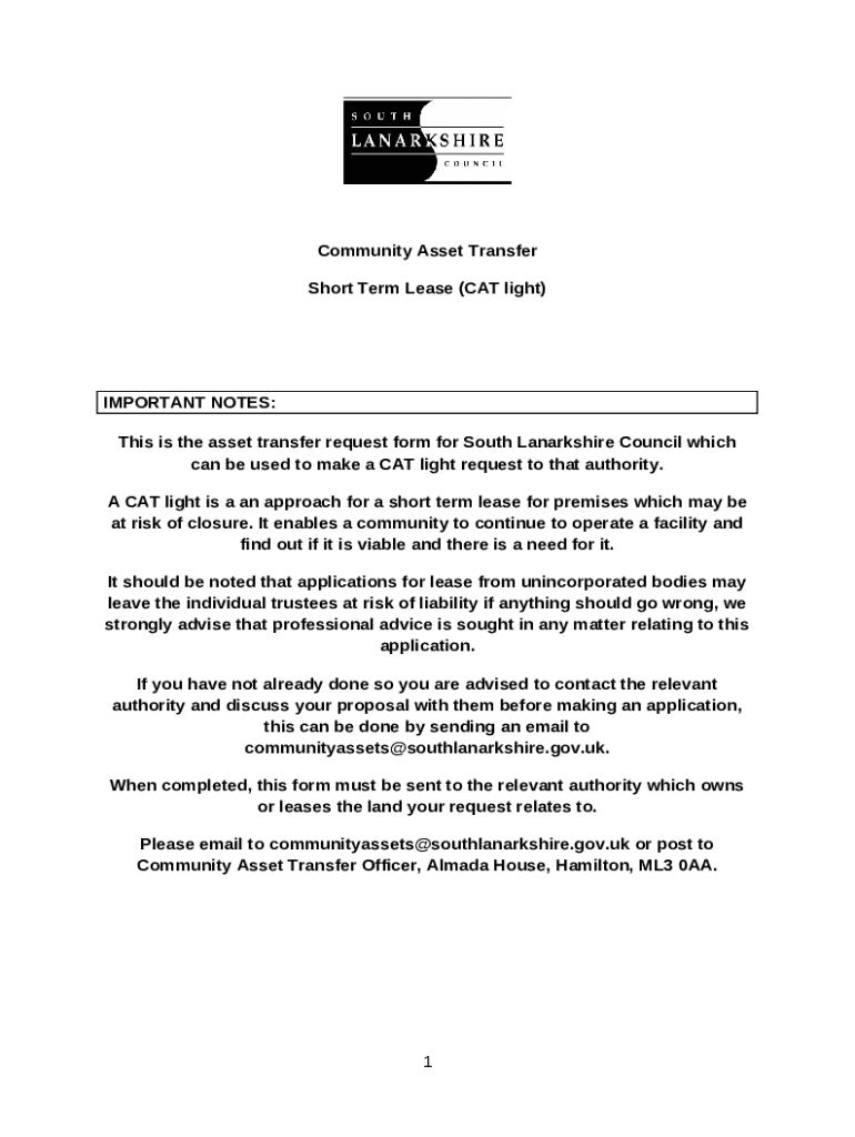Template Notice of asset transfer request - Eastfield Community Centre instructions