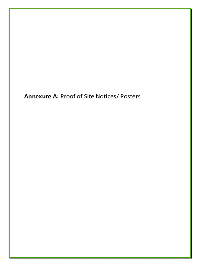 Annexure A: Proof of Site Notices/ PostersAnnexure B: Proof of Advertisements14THE NAMIBIANTUESDAY 18 OCTOBER 2022ClassifiedsTel: +26461279 632 / 279 646 Fax: +2646122 9206 email: classifieds@namibian.com.na DeaDline: 12h00 2 working Days prior to placementinDex1810Personal 1210 Anniversaries 1220 Weddings Announcements 1230 Birthday Wishes 1240 Reunions 1250 Graduations 1260 Special Messages 1270 Thank You Messages 1280 Valentines Messages2720Employment