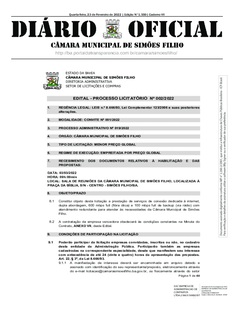 Obtenha o gratuito CMARA MUNICIPAL DE SIMES FILHO