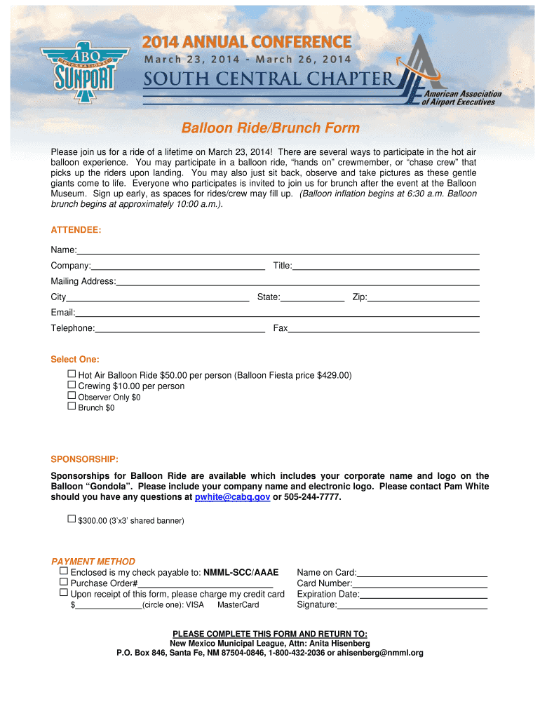 Get the free Balloon Ride/Brunch Form - cabq