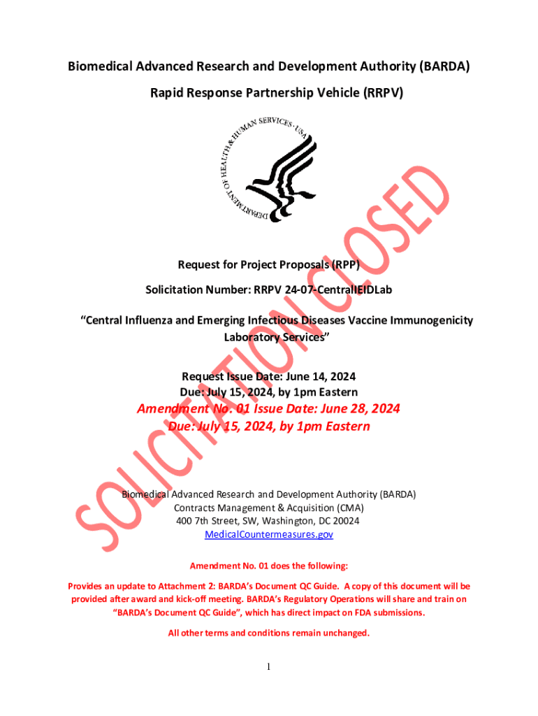 Biomedical Advanced Research and Development Authority (BARDA) Rapid Response Partnership Vehicle (RPV)Request for Project Proposals (RPP) Solicitation Number: RPV 2407CentralIEIDLab Central Influenza