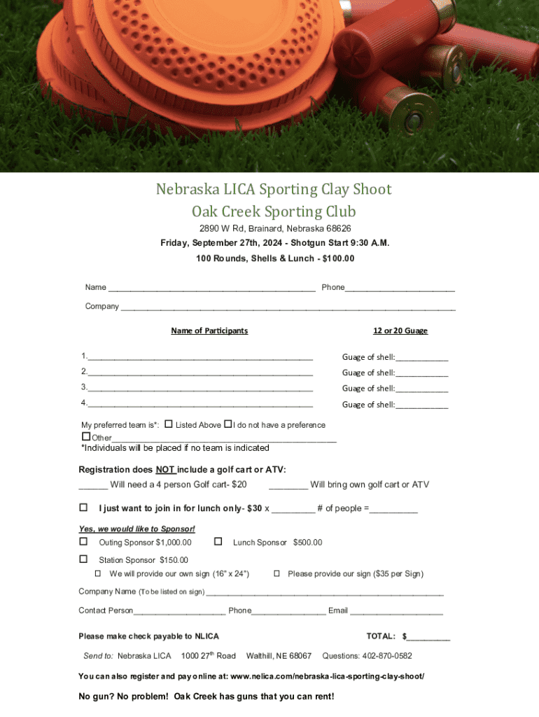 Fill out your nebraska lica sporting clay online with pdfFiller!