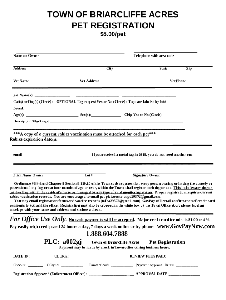 - Find the Pet Registration form in PDFfiller’s filebase.