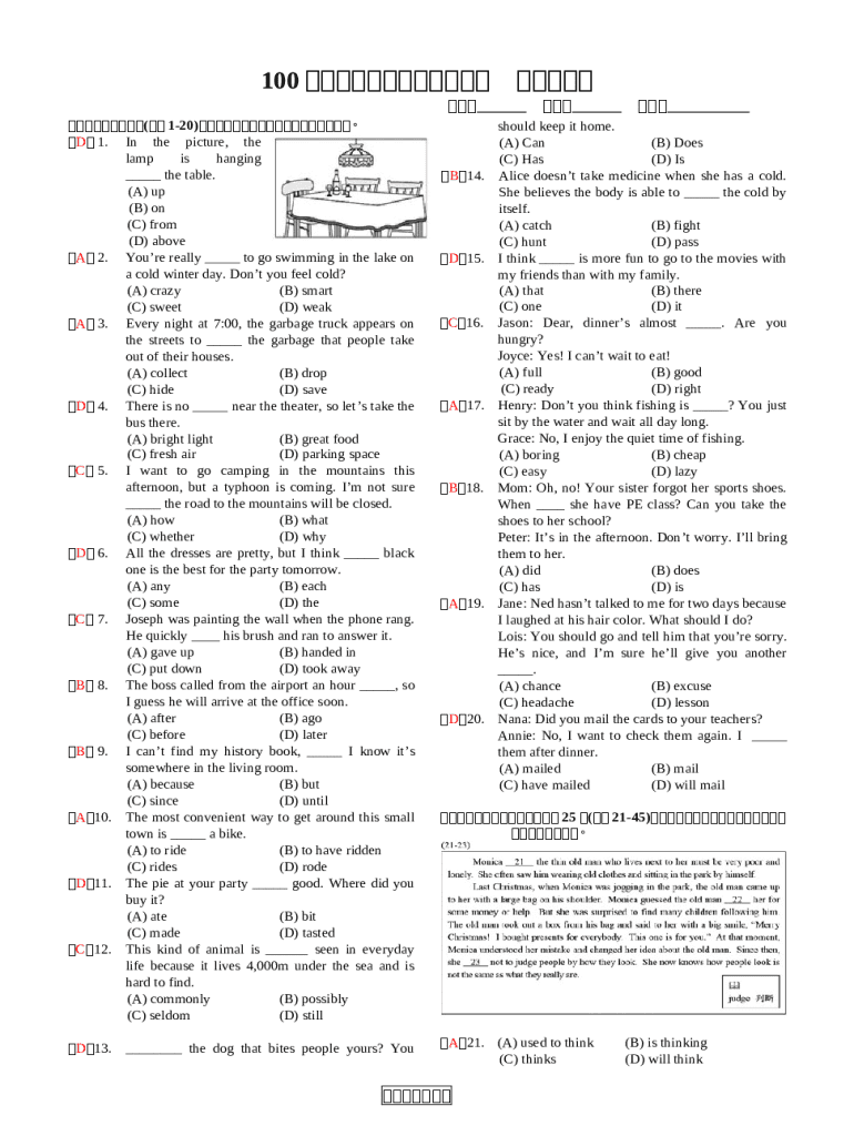 Template 100北北基高中職聯合入學測驗 英語科題本 instructions