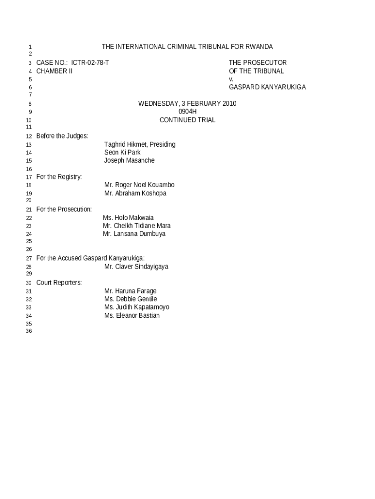 International Criminal Tribunal for Rwanda - Kanyarukiga Case word template: frequently asked questions