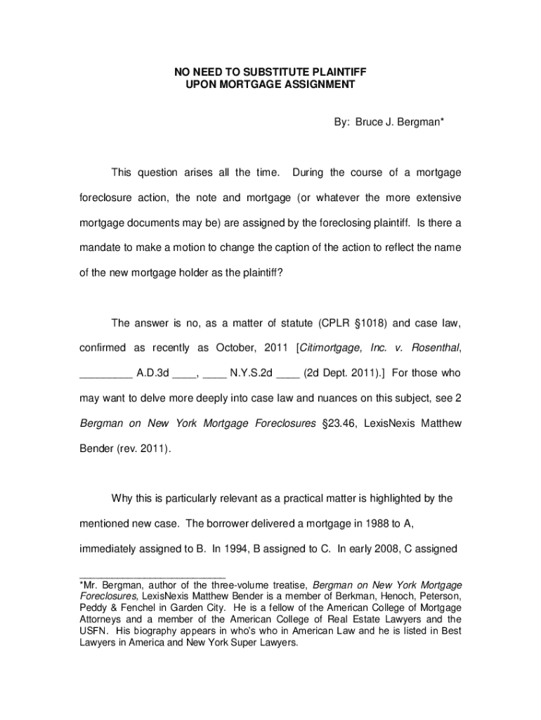 Get the free No Need to Substitute Plaintiff Upon Mortgage Assignment