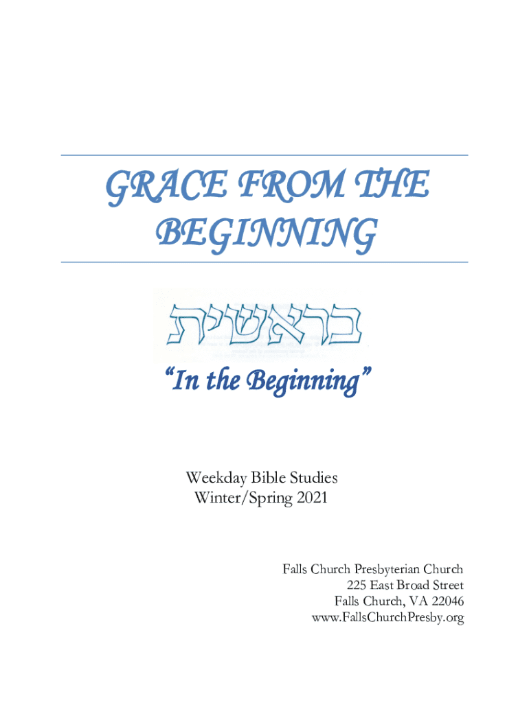 GRACE FROM THE BEGINNINGIn the Beginning Weekday Bible Studies Winter/Spring 2021Falls Church Presbyterian Church 225 East Broad Street Falls Church, VA 22046 www.FallsChurchPresby.orgGrace from the