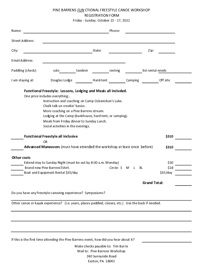Get the free Pine Barrens Functional Freestyle Canoe Workshop Registration Form