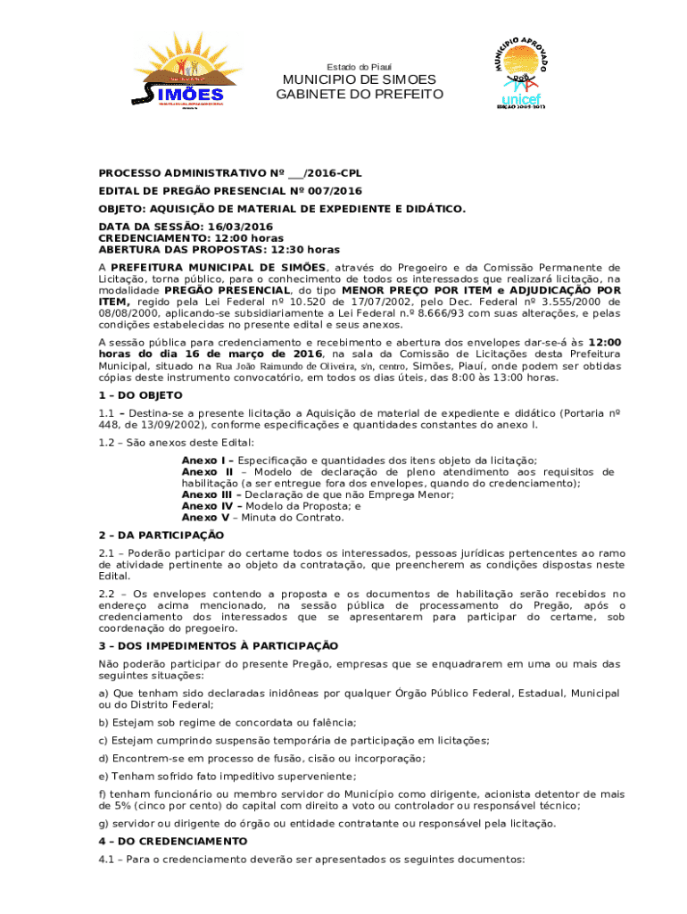 Frequently asked questions about the form OBJETO: AQUISIO DE MATERIAL DE EXPEDIENTE E DIDTICO