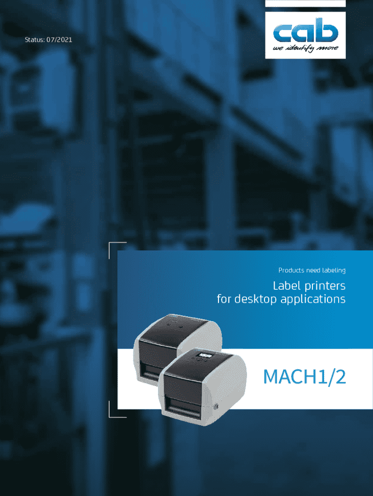 Status: 07/2021Products need labelingLabel printers for desktop applications2Key features With the MACH1/2, cab completes its printer range in the lower price segment: Reliable 4 desktop printers