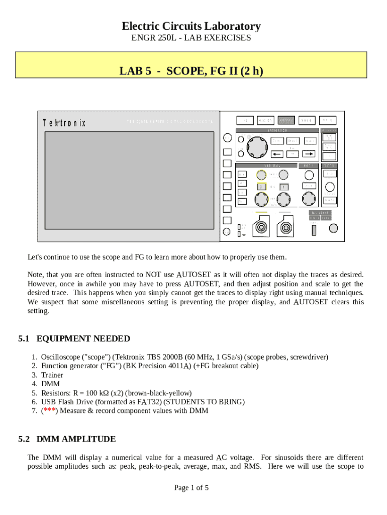 Instructions for the form Electric Circuits Laboratory Engr 250l Lab Exercises