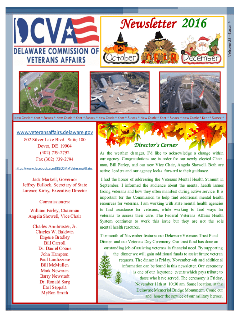 New Castle * Kent * Sussex * New Castle * Kent * Sussex * New Castle * Kent * Sussex * New Castle * Kent * Sussex * New Castle * Kent * Sussex *www.veteransaffairs.delaware.gov 802 Silver Lake Blvd.