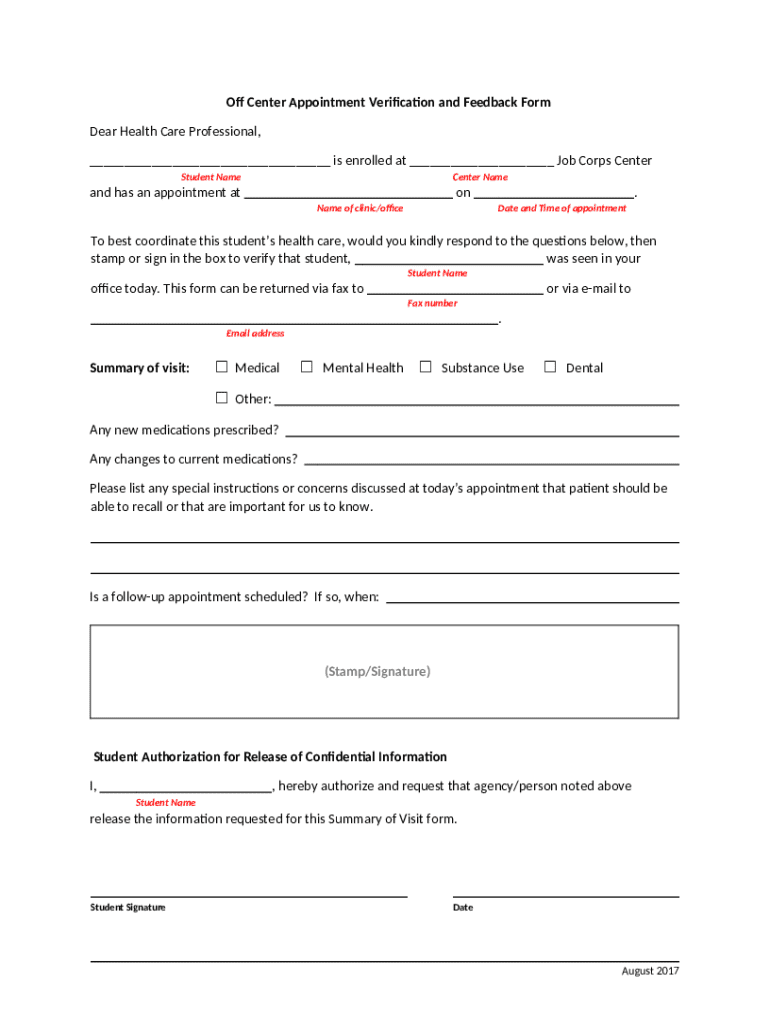 Once you are ready to start completing the Off Center Appointment Verification and Feedback ms word form, you have to make clear that all the required information is prepared. This part is highly important, so far as errors may cause unwanted consequences. It's actually unpleasant and time-consuming to re-submit whole word template, not even mentioning penalties caused by missed deadlines. Handling the figures requires more concentration. At first glimpse, there is nothing challenging about this. However, there's no anything challenging to make an error. Experts recommend to keep all important data and get it separately in a different document. Once you have a writable sample so far, it will be easy to export that content from the file. Anyway, all efforts should be made to provide actual and correct information. Check the information in your Off Center Appointment Verification and Feedback form twice when filling out all required fields. You also use the editing tool in order to correct all mistakes if there remains any.