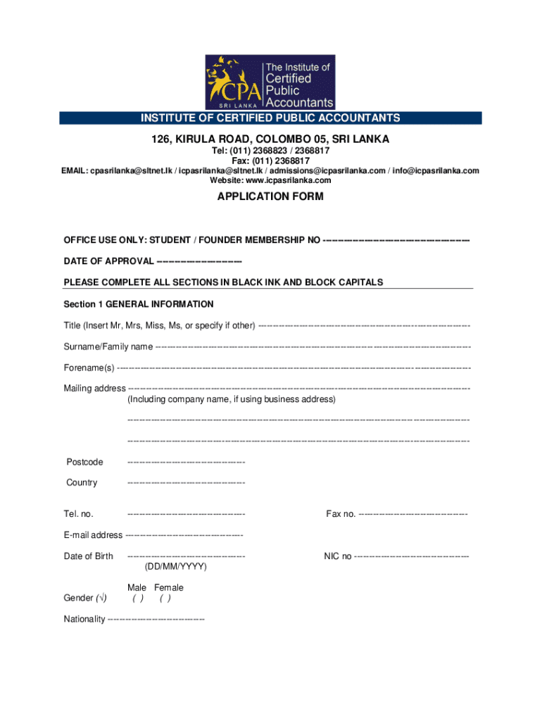 INSTITUTE OF CERTIFIED PUBLIC ACCOUNTANTS 126, KARLA ROAD, COLOMBO 05, SRI LANKA Tel: (011) 2368823 / 2368817 Fax: (011) 2368817 EMAIL: cpasrilanka@sltnet.lk / icpasrilanka@sltnet.lk / admissions@icpasrilanka.com