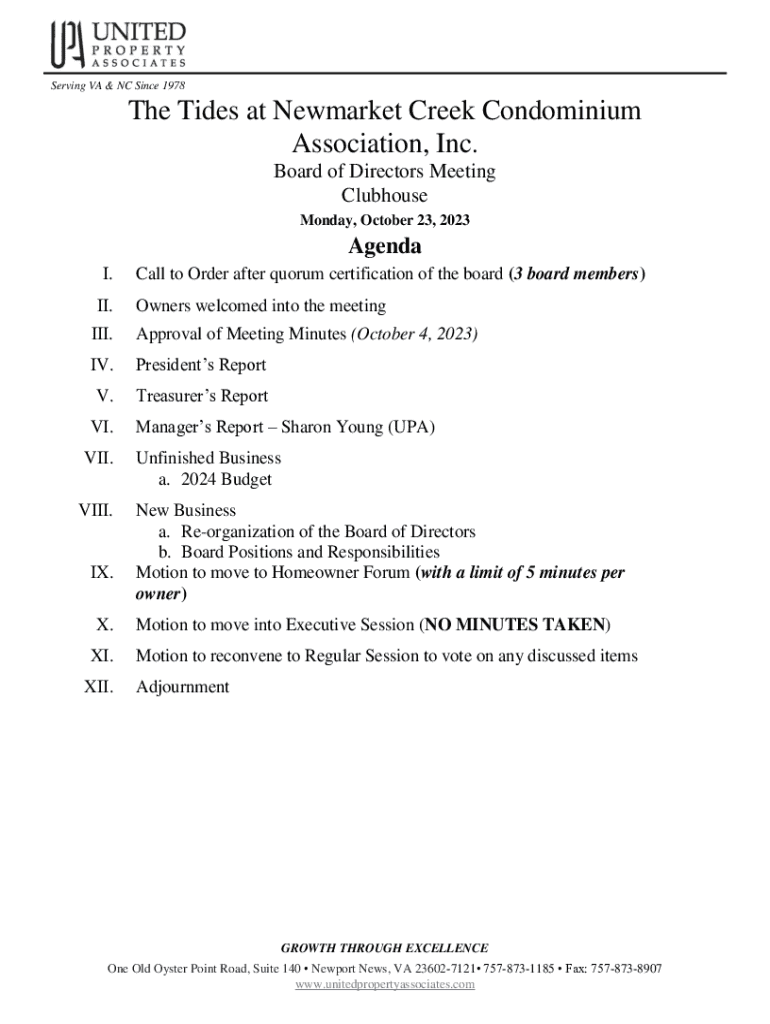 Get the free The Tides at Newmarket Creek Condominium Association, ...