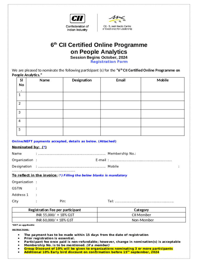 Instructions for the form Registration for Cii Certified Online Programme