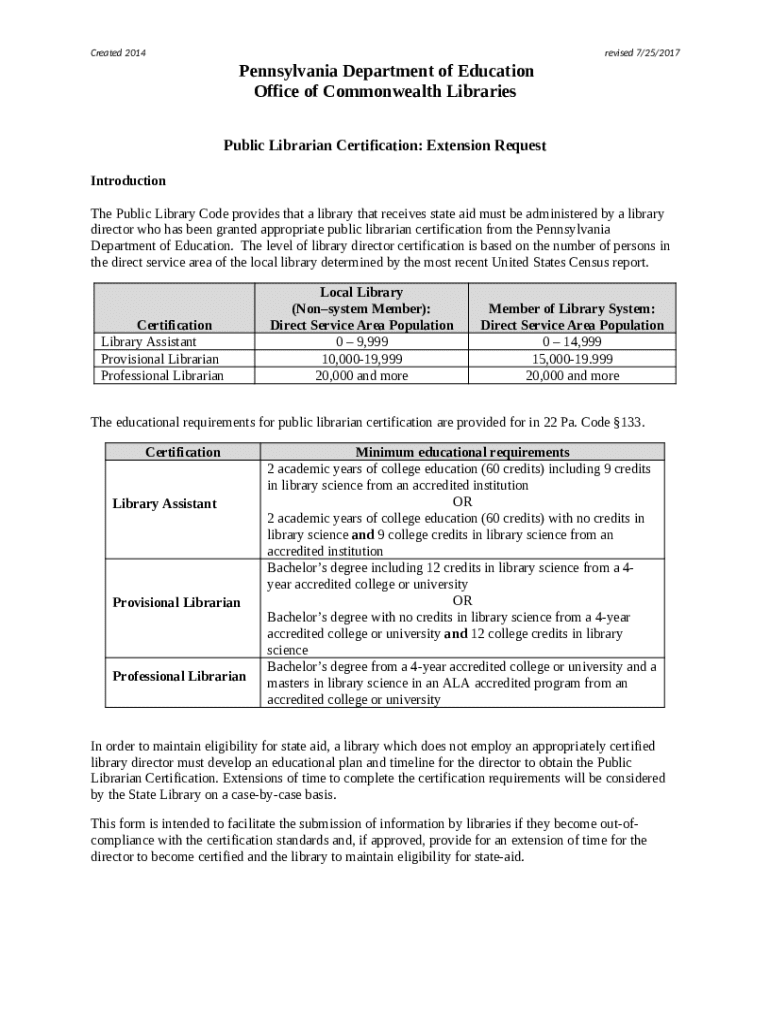 Instructions for the Public Library Director Certification Extension Request form