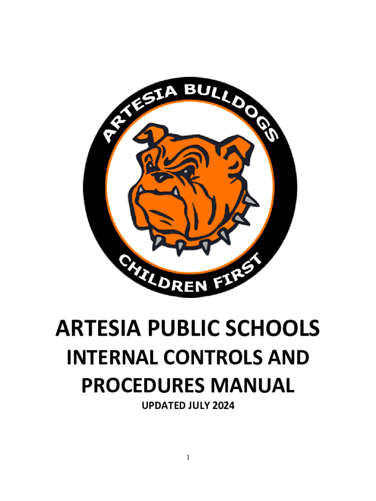 This manual outlines the internal controls and procedures for Artesia Public Schools, ensuring compliance with regulations and safeguarding assets.