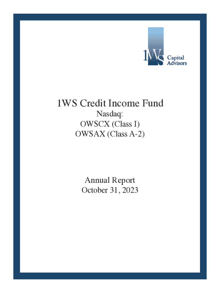 1WS Credit Income Fund Nasdaq: OWSCX (Class I) OWSAX (Class A2)Annual Report October 31, 2023Table of Contents Management Commentary ................................................................................................................ 1 Consolidated Schedule of Investments ............................................................................................. 7 Consolidated Statement of Assets and Liabilities ................................................................