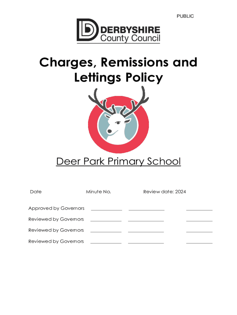 PUBLICCharges, Remissions and Lettings PolicyDeer Park Primary School DateMinute No.Review date: 2024Approved by Governors_________Reviewed by Governors_________Reviewed by Governors_________Reviewed