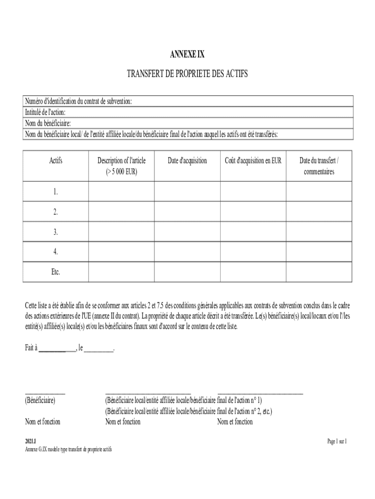 Obtenir le gratuit Annexe G.IX modele type transfert de propriete actifs