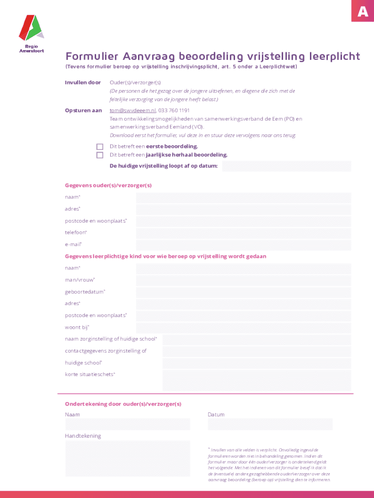 Pak de gratis Formulier beroep op vrijstelling van inschrijvingsplicht ...