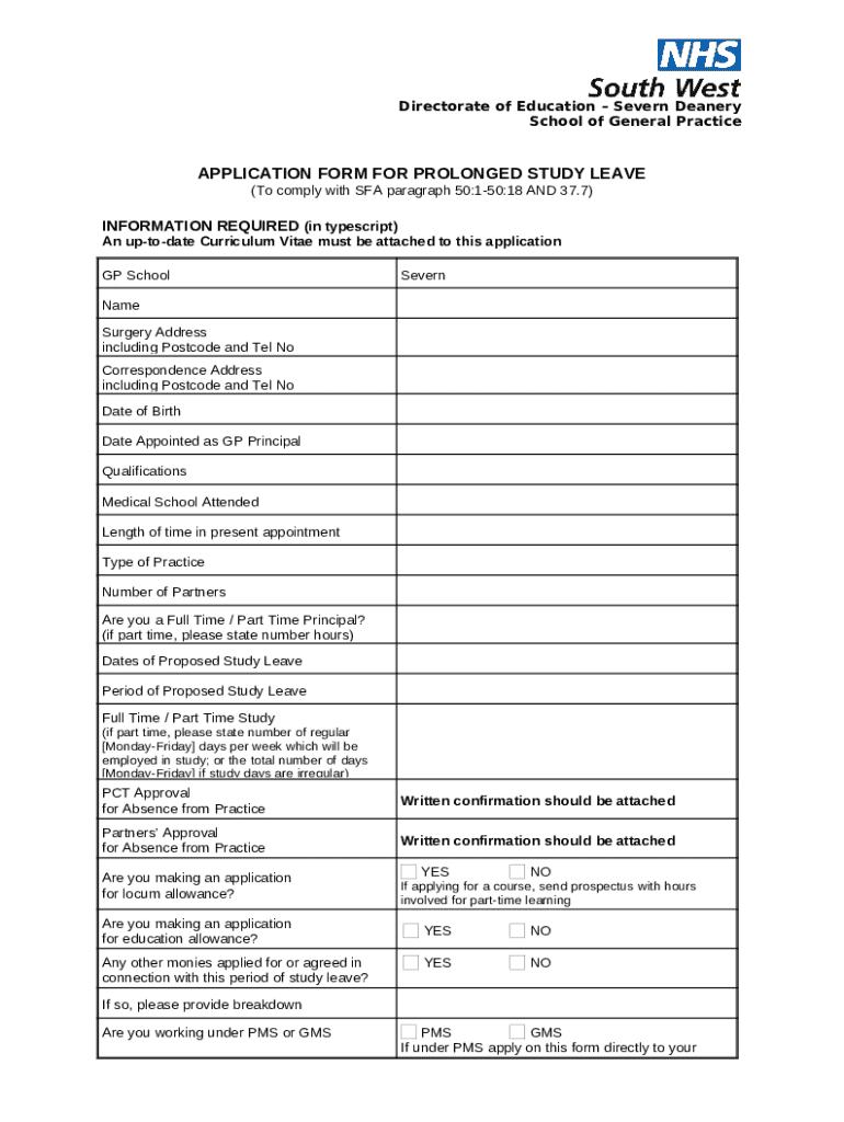How to fill Application for Prolonged Study Leave - primarycare severndeanery nhs word template