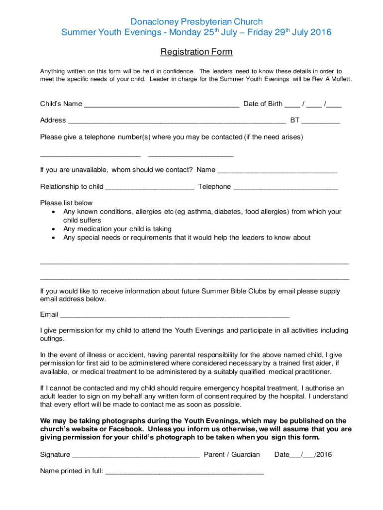 Register your child for the Monoclonal Presbyterian Church Summer Youth Evenings from July 25 to July 29, 2016. Secure their spot today!