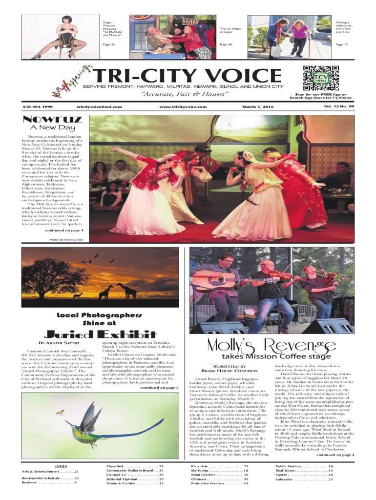 Stage 1 Theatre Presents CHICAGO the MusicalPage 32The ax drops in SunolMaking a difference... one drive at a timePage 40Page 19Scan for our FREE App or Search App Store for TCVnews 5104941999tricityvoice@aol.comwww.tricityvoice.comMarch