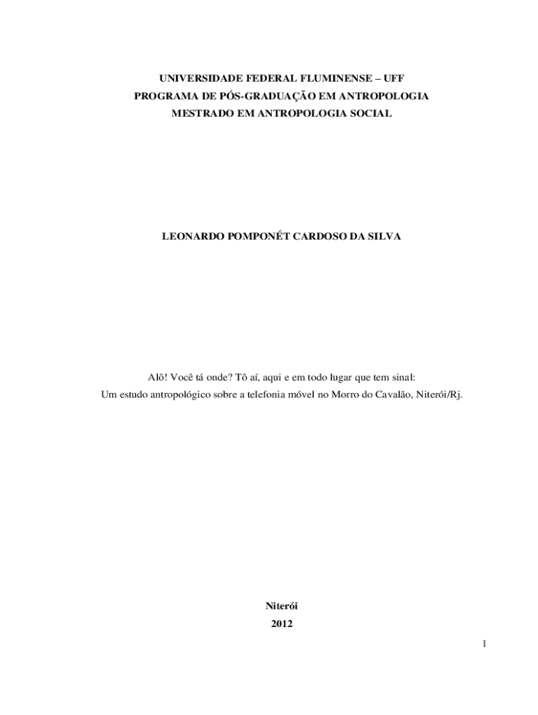 ESTRADA EM ANTHROPOLOGIST SOCIALLEONARDO POMP ONT CARDOZO DA Silva! VOC t one? T a, aqua e em to-do Lugar Que TEM final: