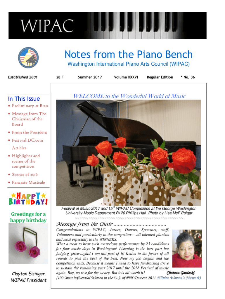Explore the highlights of the 2017 WIPAC Festival of Music, featuring talented pianists, competition winners, and community events that celebrate piano artistry.