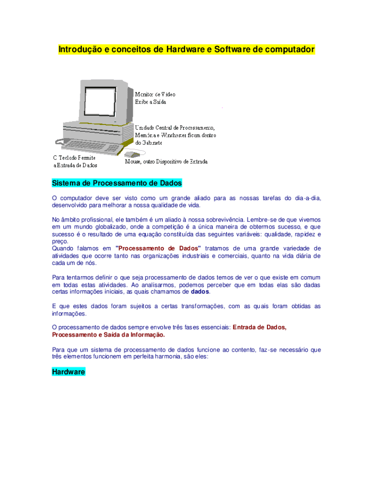 Intro duo e concertos de Hardware e Software de computadorSistema de Processamento de Dado