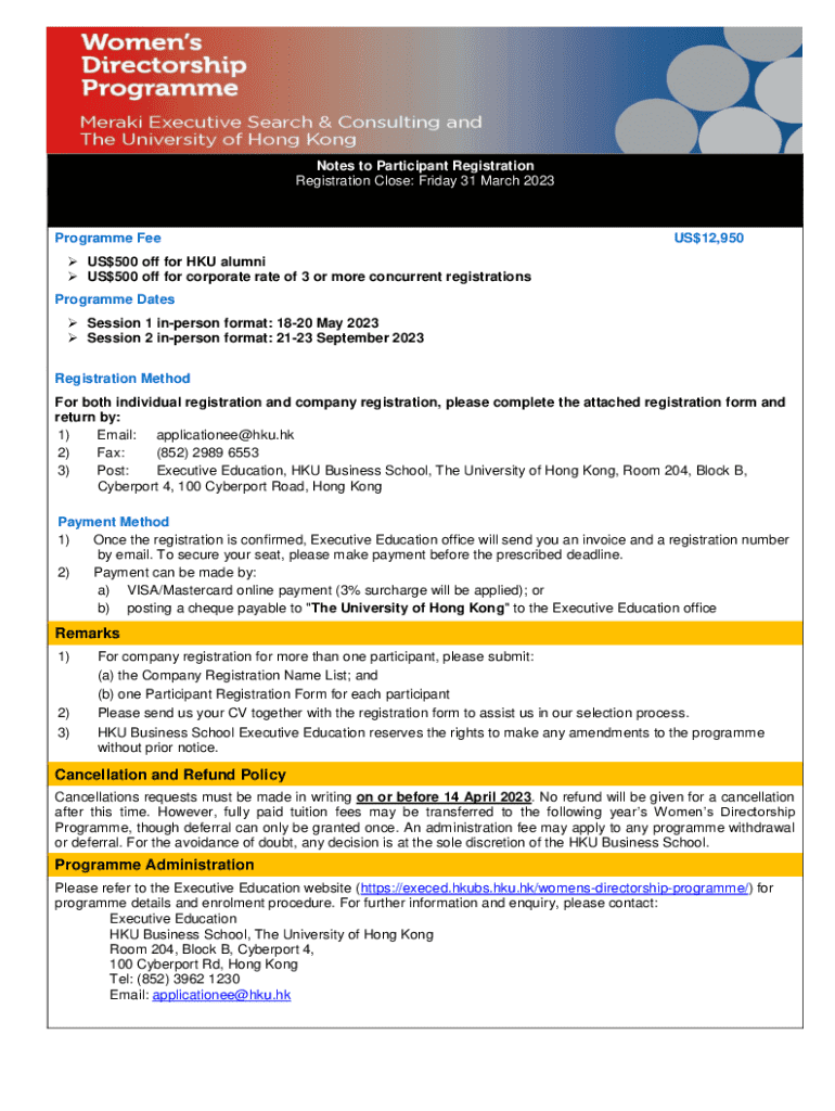 Register for the HK Women\'s Directorship Program 2023. Gain leadership skills and insights with our in-person sessions on May and September.