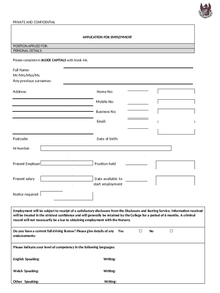 What is Application for Employment Form?