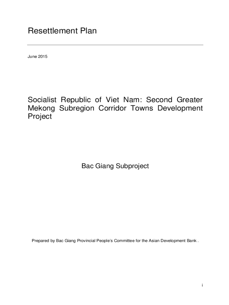 Get the free Bac Giang Subproject Updated Resettlement Plan