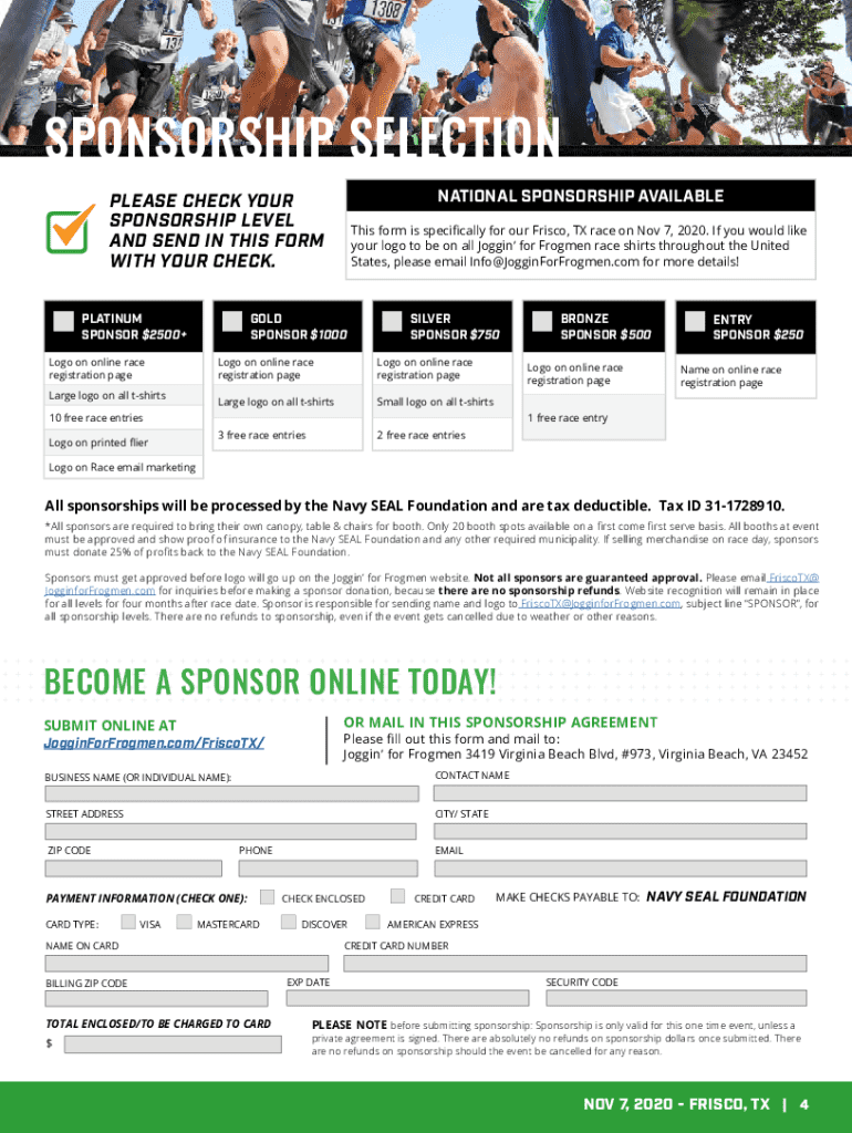Get the free NOV 7TH, 2020 FRISCO, TEXAS - Joggin' for Frogmen Race Series