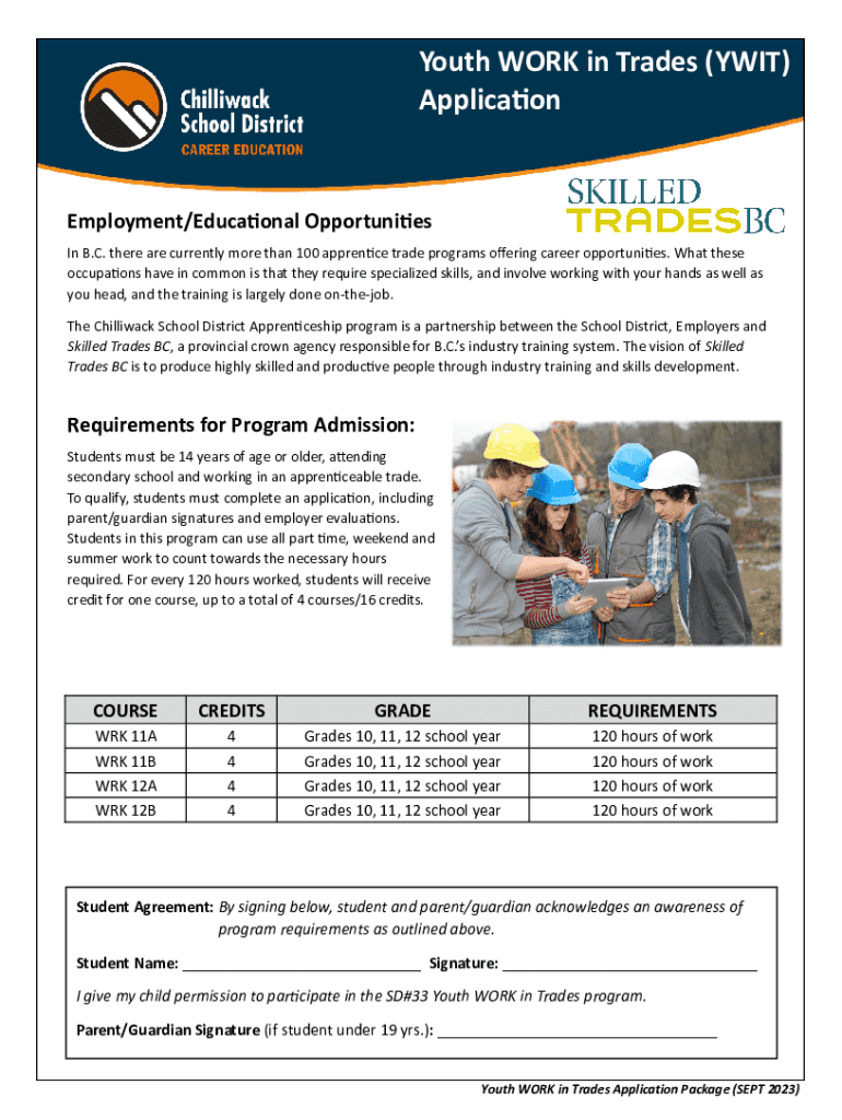 Get the free Youth WORK in Trades (YWIT) Applica on - Career Education!