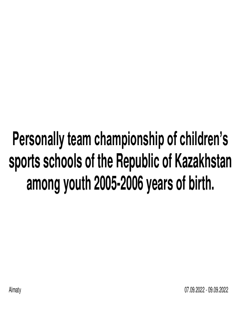 Personally team championship of childrens sports schools of the Republic of Kazakhstan among youth 20052006 years of birth.Almaty07.09.2022 09.09.2022AlmatyPersonally team championship of childrens sports schools of the Republic of Kazakhstan among youth 20052006 years of birth. FINAL PROTOCOL 07.09.2022 09.09.2022 TEAM RESULTS1 2 3 4 5 6 7 8 9 10 11 12 13 14 15 16 17 18 19 20 21 22 23 24 25 26 27 28 . \" /\" 2