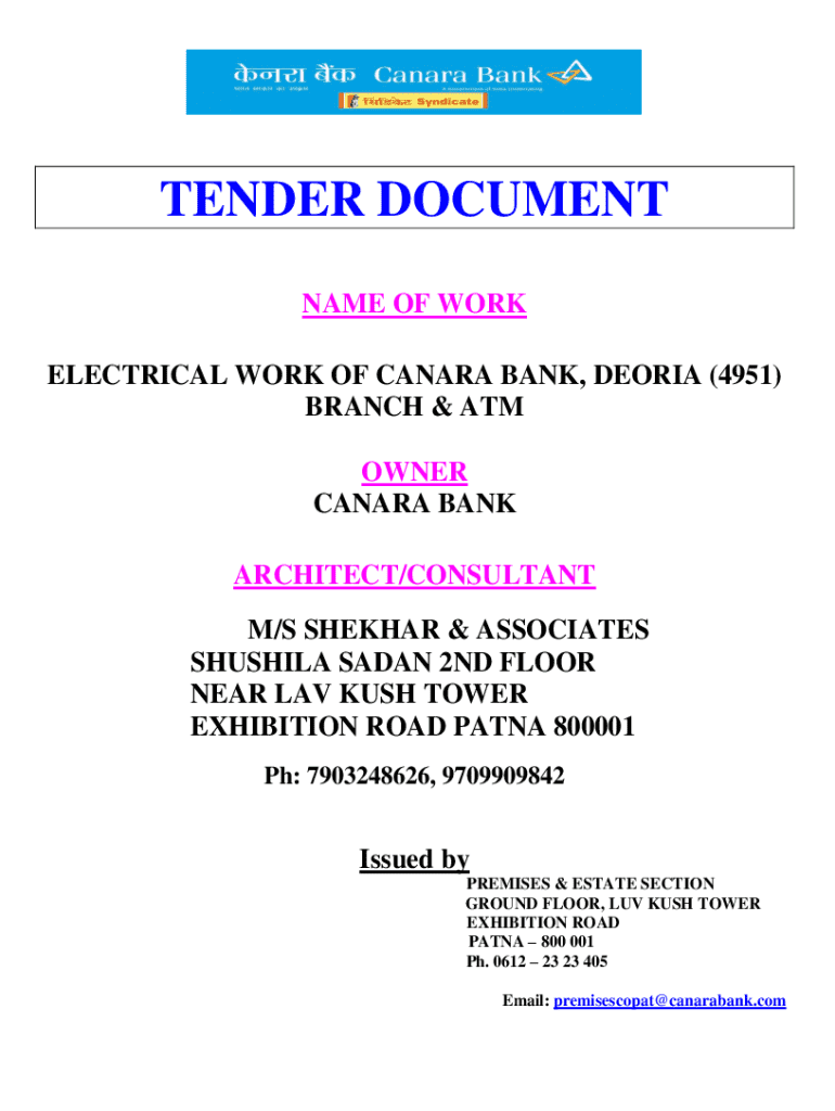 Get the free ELECTRICAL WORK OF CANARA BANK, DEORIA (4951)