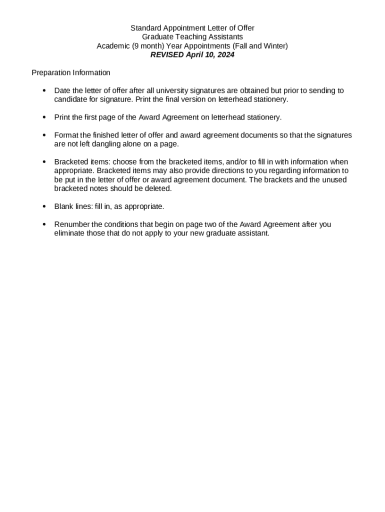 Instructions for the form Standard Appointment Letter of Offer - gradschool wayne