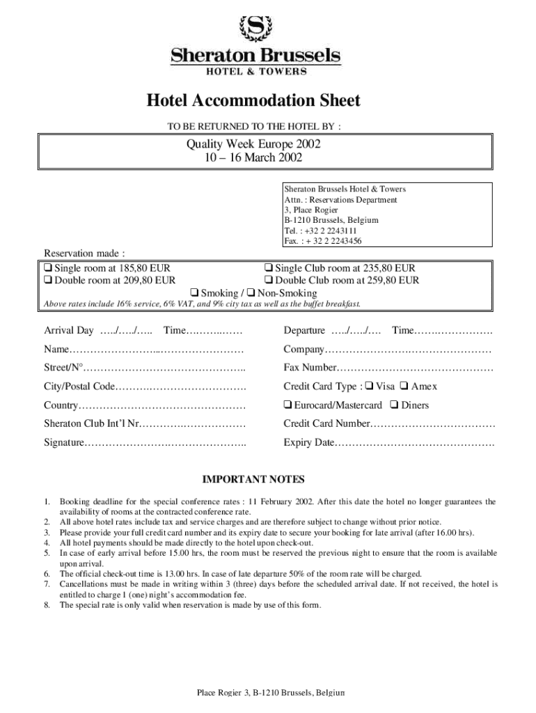 Get the free Hotel Accommodation Sheet