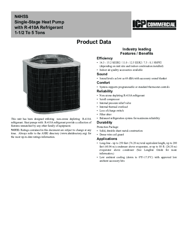 Get the free N4H5S Single-Stage Heat Pump with R-410A Refrigerant ...