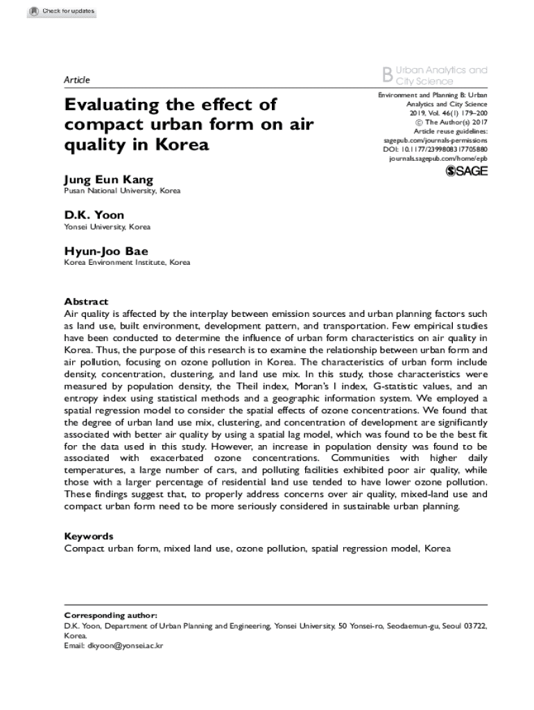 Get the free Evaluating the Effect of Compact Urban Form on Air Quality in Korea
