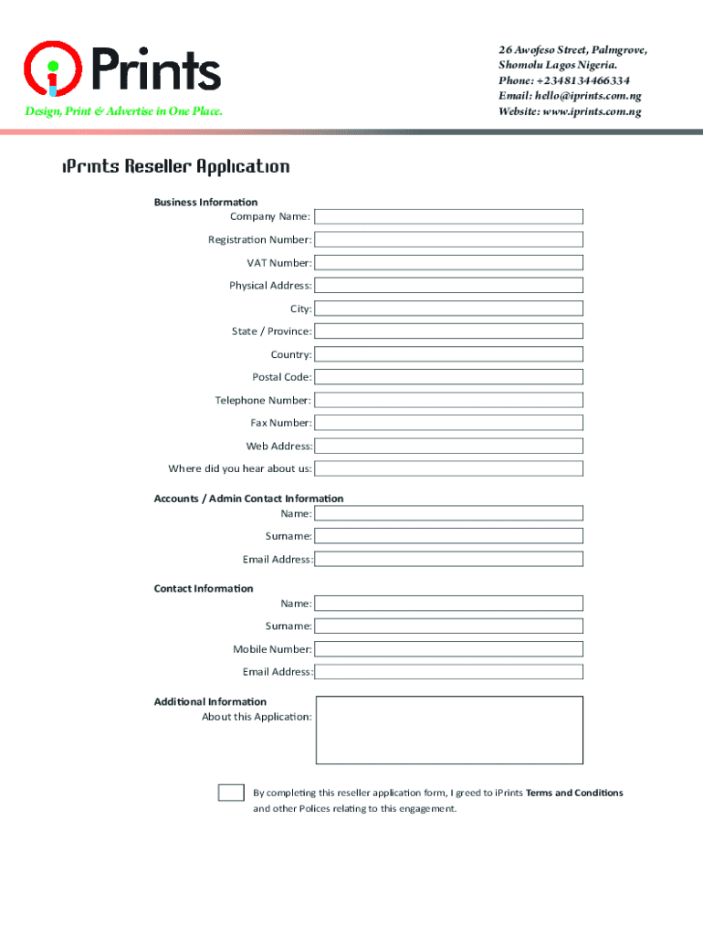 Get the free Reseller Application Form