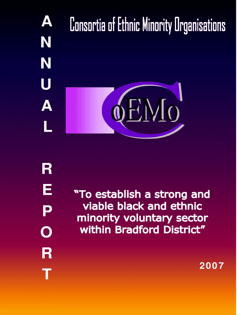 Explore COEMO\'s 2007 Annual Report highlighting key achievements and support for BME organizations in Bradford, focusing on capacity building and collaboration.