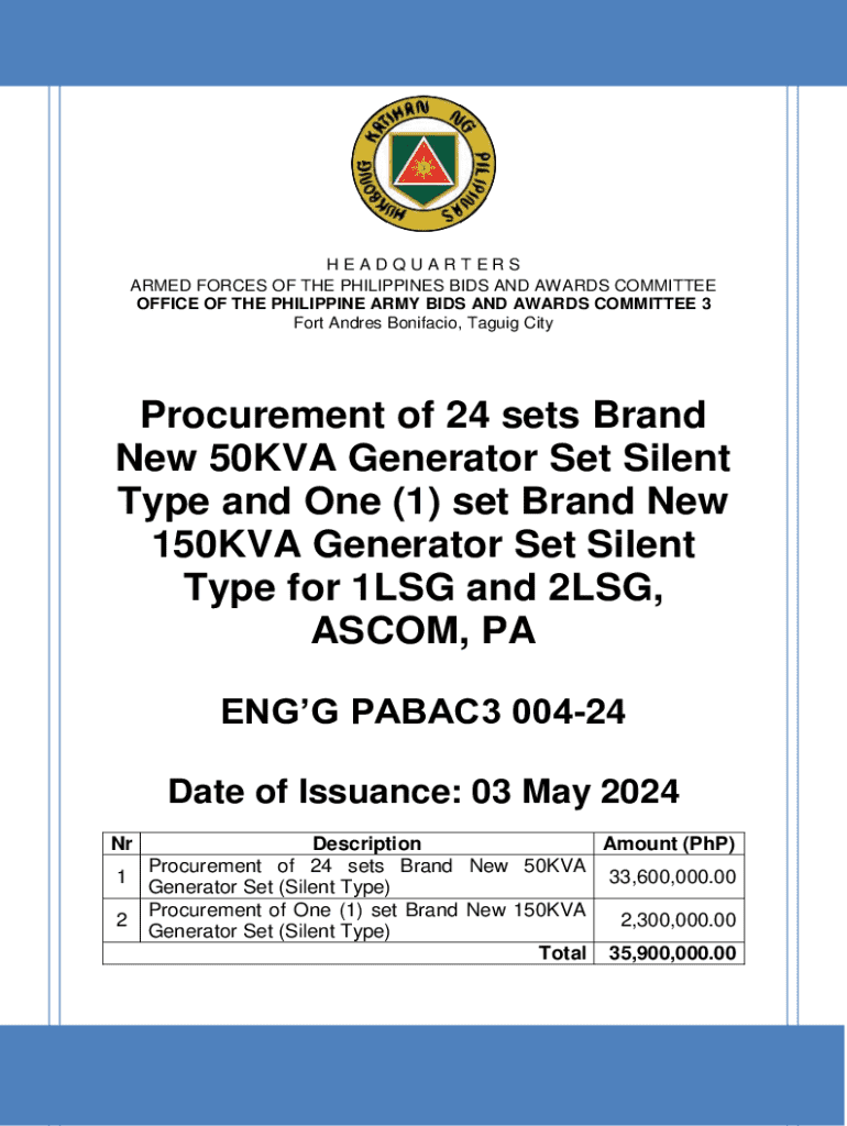 Get the Get the free BIDS AND AWARDS COMMITTEE - Philippine Army
