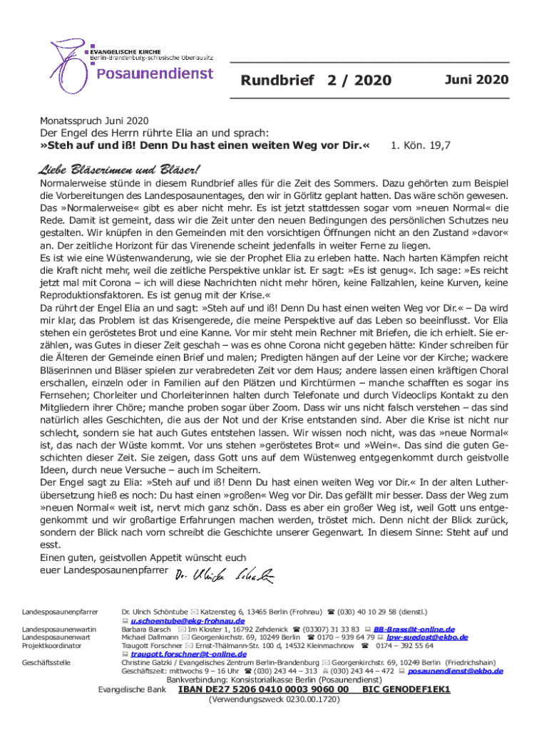 Step AUF UND i! Dean Du hast linen water WEG VOR Dir. Liebe Blserinnen UND Baser! Juni 20201. Kn. 19,7Normalerweise