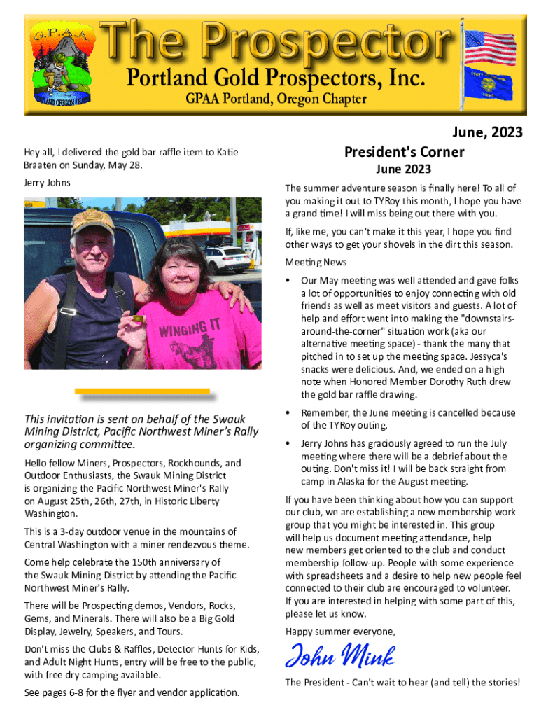 Get the free Portland Gold Prospectors, Inc. Newsletter - June 2023