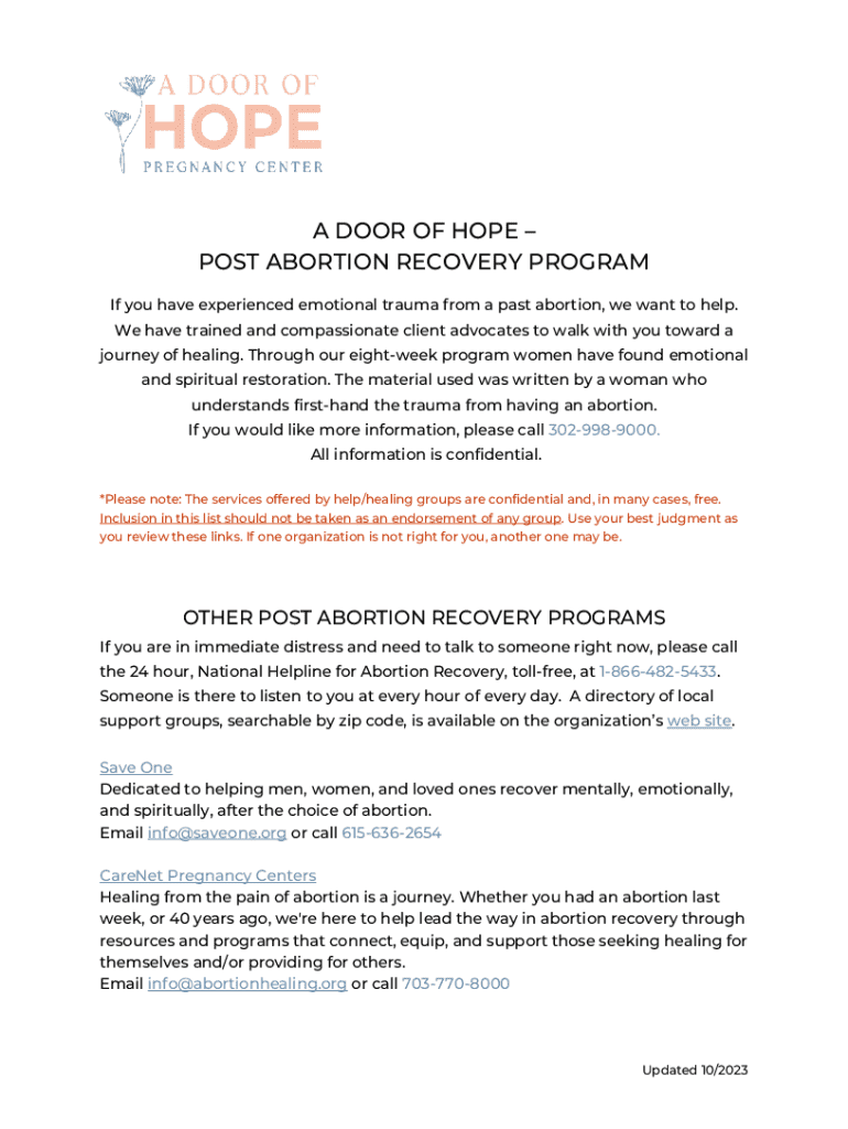 Get the free Post-Abortion CarePregnancy & Family Resource Center