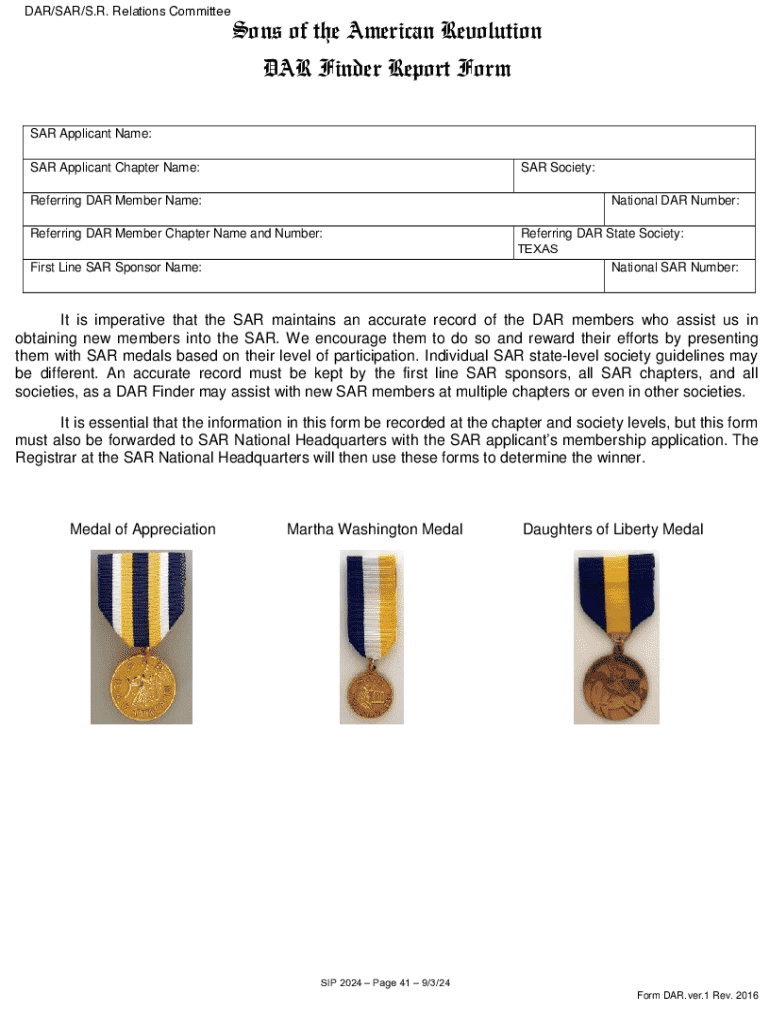 Get the free Texas DAR - Texas Society Daughters of the American ... - member txdar